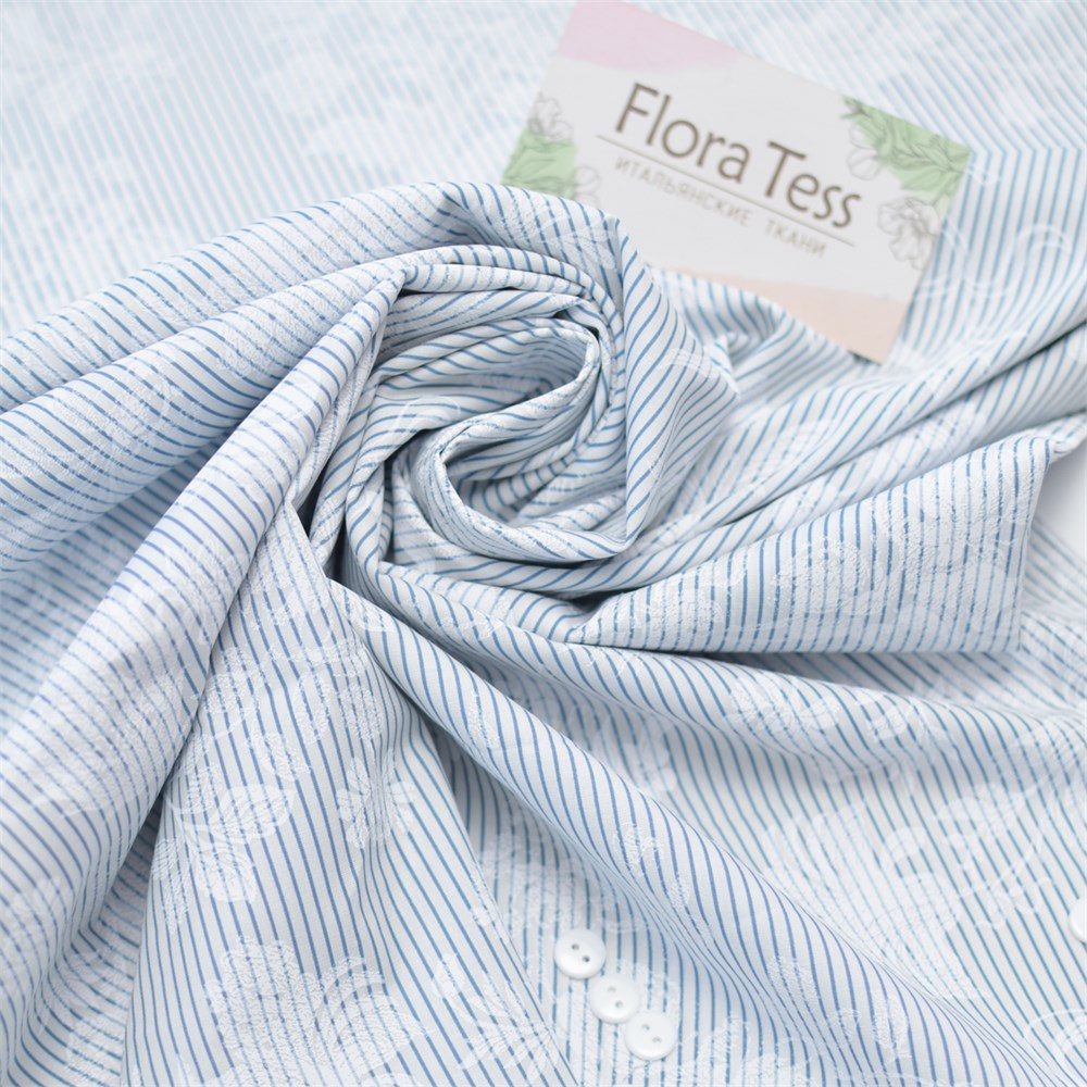 Хлопок с элегантным принтом. На полосатом фоне очень изящный цветочный мотив.Ткань тонкая, легкая, не просвечивает, комфортно тянется. Подойдет для пошива рубашки, топа, платья-рубашки, сарафана.