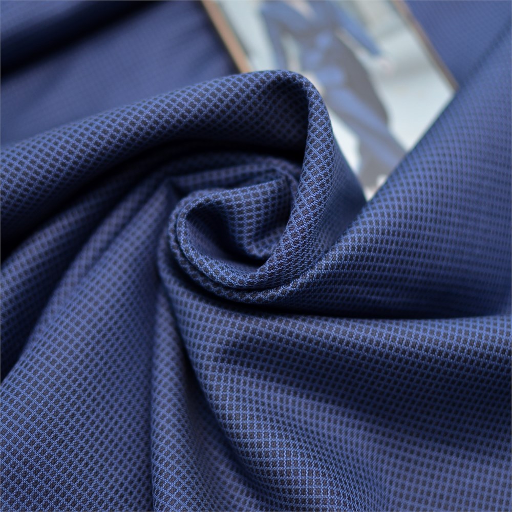 Костюмная ткань в синей гамме. Глубокие оттенки смотрятся очень элегантно. Благородный состав. Ткань держит форму, сминаемость небольшая. Поверхность с матовым блеском, шелковистая, комфортная к телу. Подойдет для пошива костюма, юбки или брюк свободного кроя.
