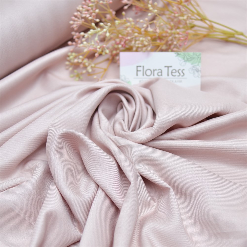 Плательная вискоза в элегантном пудрово-розовом цвете. Приятное качество, ткань мягкая, не просвечивает, сминаемость минимальная, поверхность с красивым блеском.
