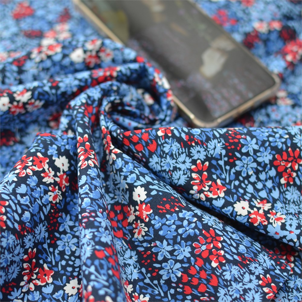 Хлопок с мелким цветочным принтом. Ткань тонкая, легкая, не просвечивает, чуть тянется за счет эластана в составе. Подойдет для пошива рубашки, топа, платья-рубашки, сарафана.